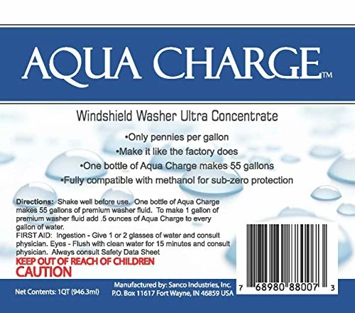 - Will freeze at 32Β°F, add 13 gallons of Methanol per 55 gallons of Aqua Charge for -20Β°F freezing point