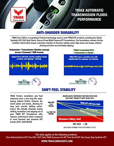 - It helps to control transmission shudder and provides excellent vehicle driveability. It provides a wide range of seal compatibility and is not harmful to synthetic rubber seals. Excellent lubricating characteristics for quiet operation and smooth shifting in approved transmissions. Superb protection against rusting and corrosion. Superb foaming resistance β contains high-quality anti-foaming agents.